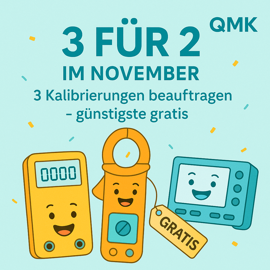 Only for calibrations by QMK (excluding: External services/partner laboratories, repairs, adjustments, shipping/collection, on-site assignments, test equipment labeling/accessories, express/rush surcharges and other additional services)